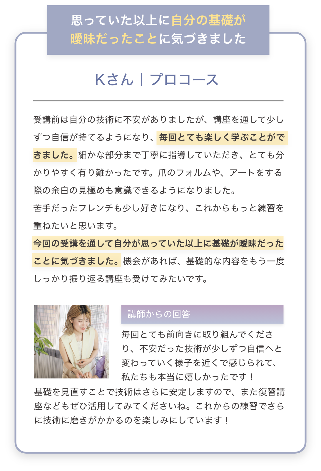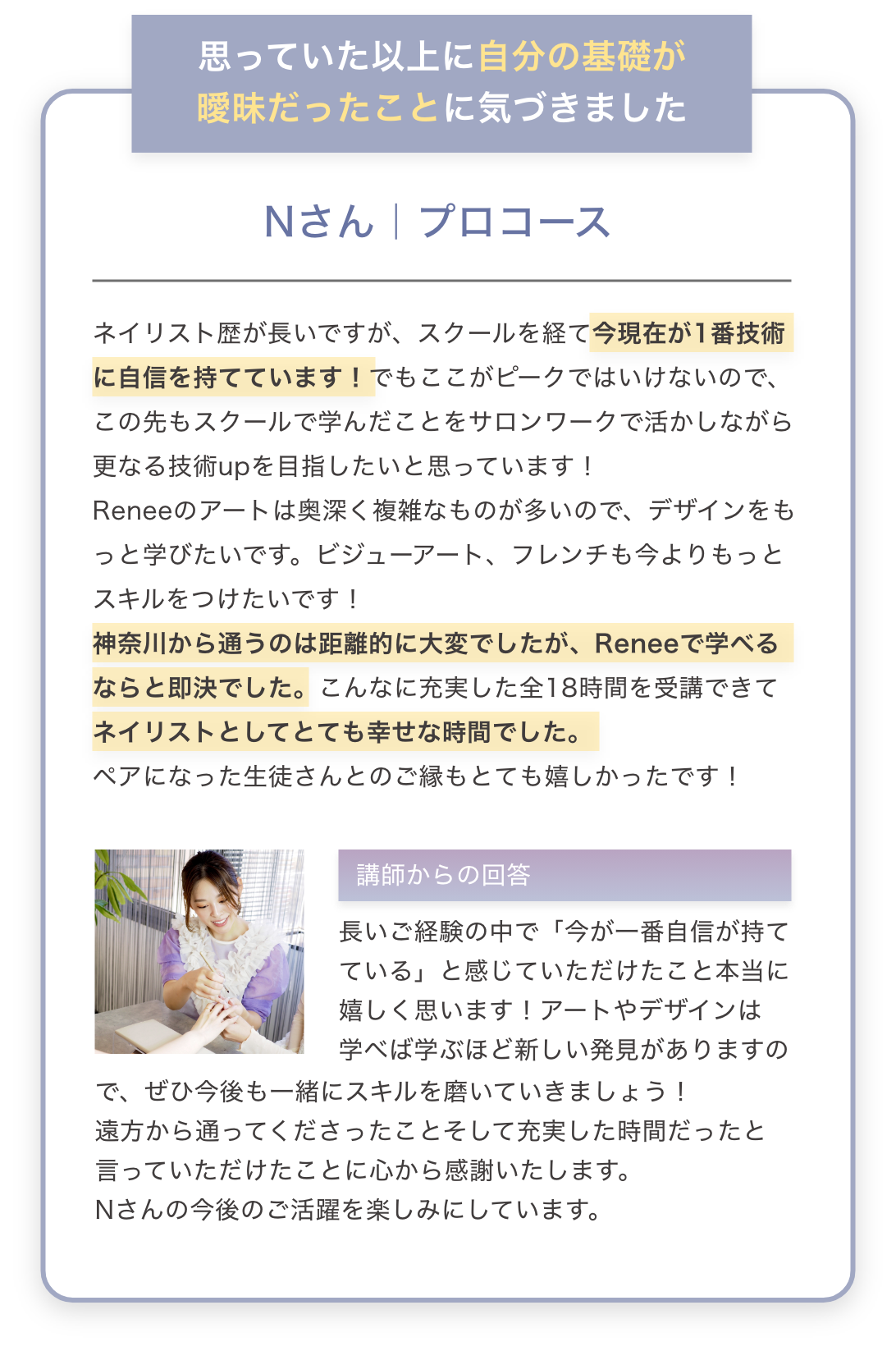 現場に強い現役ネイルアーティストが徹底指導いたします