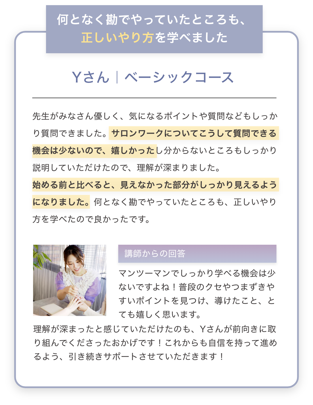 サロンワークで必要とされる基礎〜上級テクニックを学べる